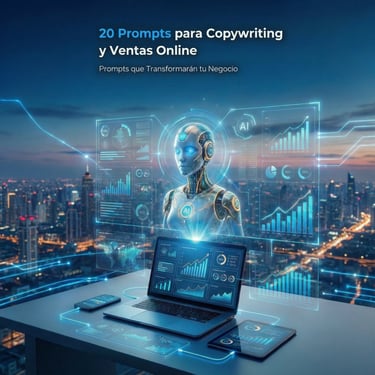 Optimiza tu estrategia digital con prompts enfocados en resultados. Este ebook incluye 20 prompts avanzados de marketing para analizar audiencia, crear estrategias de contenido, escribir copy de alto impacto, generar campañas de email marketing y mejorar tu posicionamiento online.